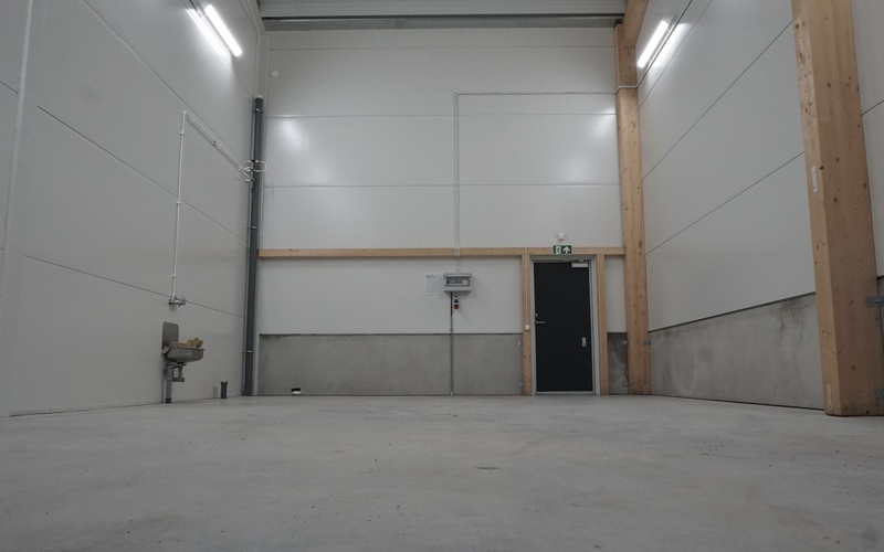 Med en generös golvyta på 69 kvm och en frihöjd på 4,5 meter erbjuder lokalen flexibla möjligheter för både produktion eller lager.